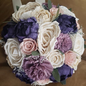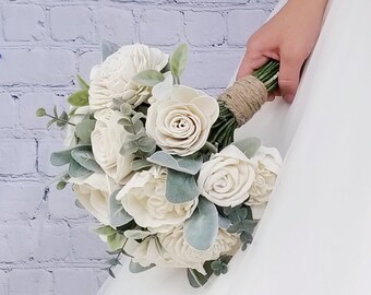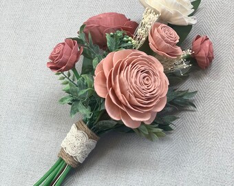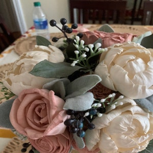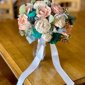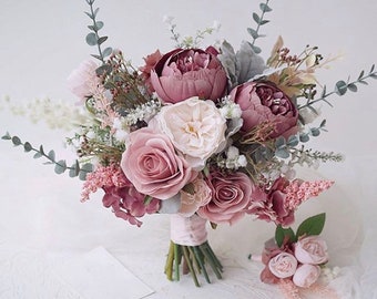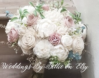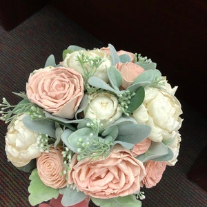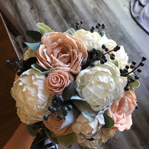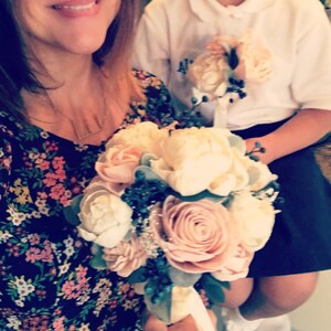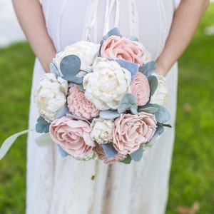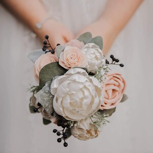 Blush and ivory peony and rose wedding bouquet, Sola wood flowers, eco flower