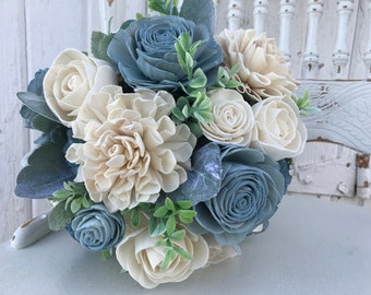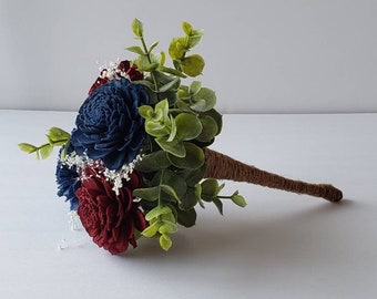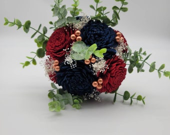 Sola flower bouquet, blush pink sola wood flower wedding bouquet, eco flowers, alternative keepsake bouquet, navy blue wedding