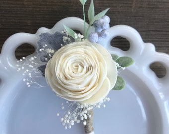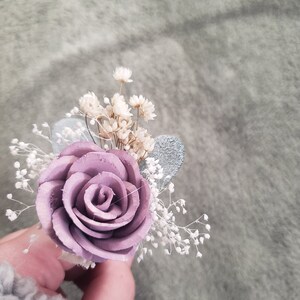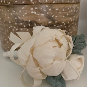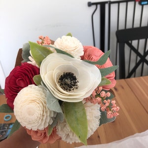 I fell in love with this bouquet awhile ago, and now that I finally have it, it's even more stunning in person! Communication was very prompt & informative, and special requests were kindly arranged. Such a very quick turnaround, too! The boutonnieres & corsages also match perfectly. I'm a wedding videographer, so I've seen a lot of sola flower bouquets, but this is the most beautiful I've seen in terms of craftsmanship. Would highly recommend to anyone looking to avoid the "real flower" route! So excited to have such a gorgeous bridal bouquet, and one that I can continue to keep as part of our home decor for many years to come!