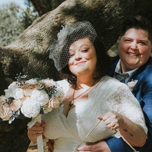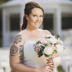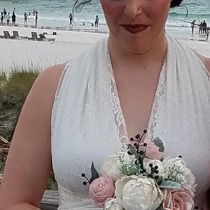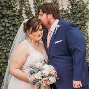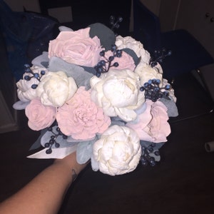 From the moment I saw this bouquet, I knew I HAD to have it for my wedding!! It has my wedding colors (blush and navy), and because they are not real flowers I could order them months ahead of time and keep them safely tucked away until the big day! Not to mention, I now have a keepsake to remind me of my day forever <3 Amber is so helpful and responds to messages quickly. Great service! I will definitely be ordering a boutonniere for my handsome groom. I cannot wait to see my bouquet in pictures after my June wedding!