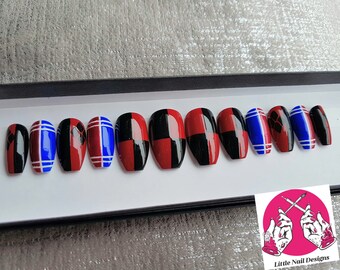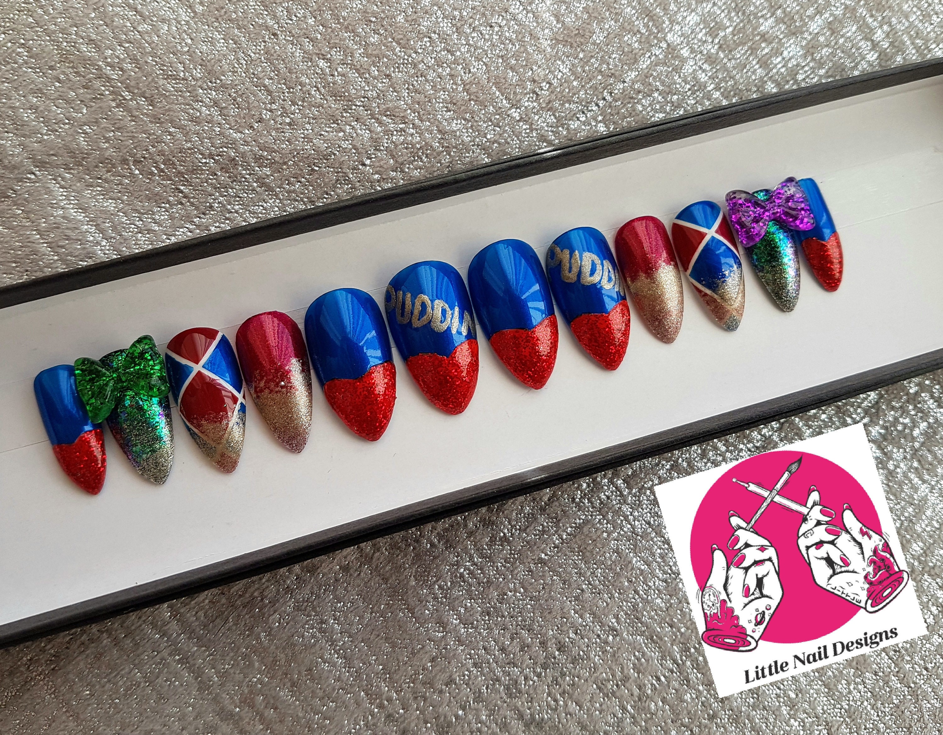 Harley Quinn Suicide Squad hand painted false nails | Harlequin | The Joker | Cosplay | Little Nail Designs