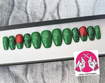 Poison Ivy Hand Painted False Nails | Cosplay | Halloween | Little Nail Designs