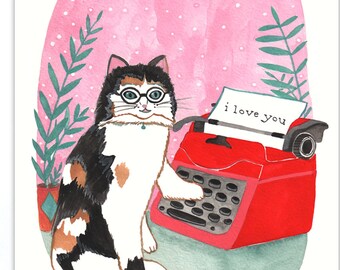 I Love You Card - Cat with Typewriter