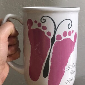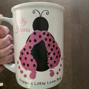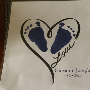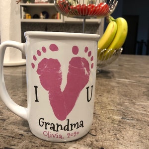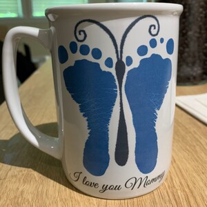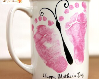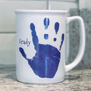 Keywords: Baby footprint art, handprint art, footprint art, baby keepsake, in loving memory, print kit, mothers day, fathers day, grandparents day, new baby, baby birth announcement, handprint mug, handprints, footprints, ink-less print kit