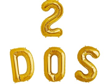 DOS 14" Gold Balloons - Second Birthday Gold Balloons - Spanish TWO Gold Balloons