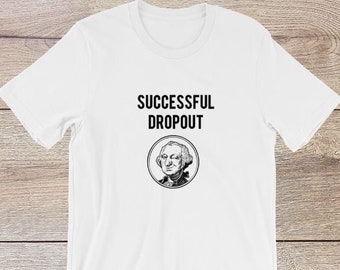 Successful Dropout | Funny Sarcastic Shirt Saying with Graphic | Dark Humor College Dropout T-Shirt in Black Text | Success Tees for Unisex