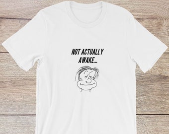 Not Actually Awake | Funny Sleepy Quote Shirt | I'm Tired Graphic T-Shirt in Black Text | Nap and Sleep Tees | Sarcastic Gift for Friend