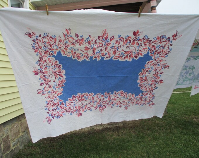 Vintage Tablecloth-Blue and Pink Berries