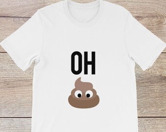 Oh Shit | Funny Quote Shirt with Poop Emoji Graphic for Unisex | Cute Humorous Vulgar Emoticon T-Shirt | Offensive Silly Pooping Gift Tees