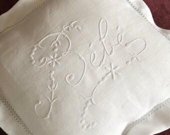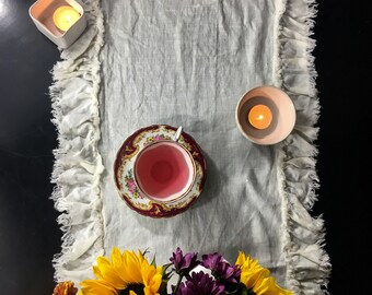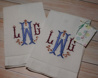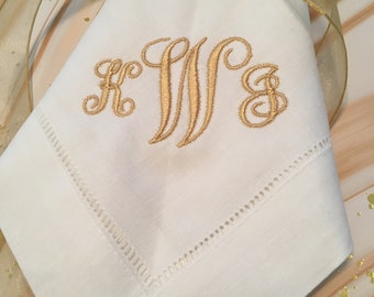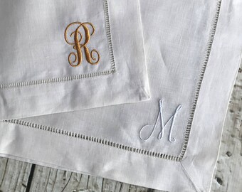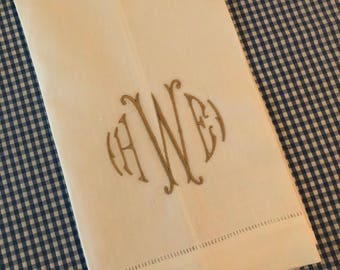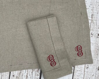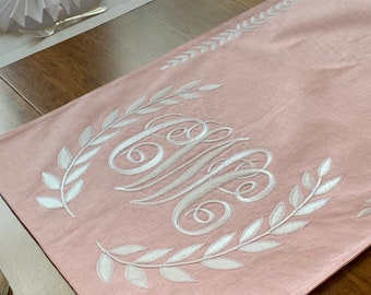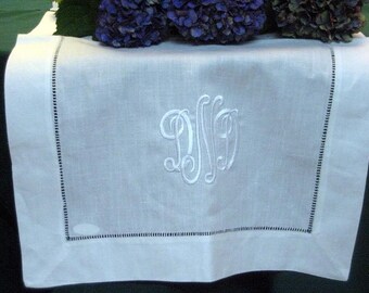 Monogrammed Hemstitched Linen Runner, 16"x54"
