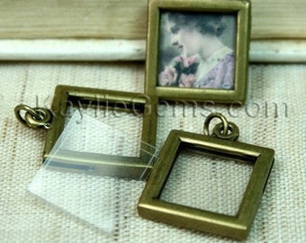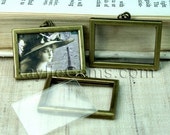 Picture Frame Charm Pendant Double Sided Rectangle Landscape 34x24mm - Antique Brass -2 Sets