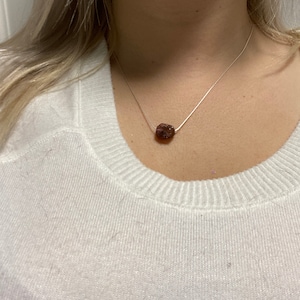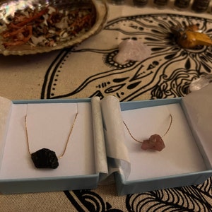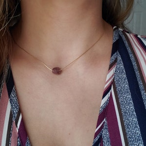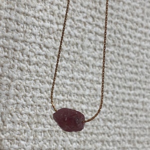 This necklace features a dainty, rough gemstone threaded on a 14k Gold Filled, Sterling Silver, or 14k Rose Gold Filled chain. Available in 45 different stone and color options, this necklace is ideal for layering & makes the perfect gift!