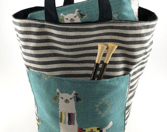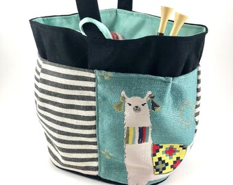 Atenti Hope Basket MamaLLama Flame Yarn Basket w/ 2 outer pockets Large Yarn Bag Bucket Bag Knitting Project Bag Yarn Caddy Needle Arts Bag
