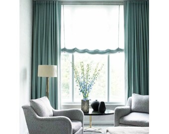 Pair of Teal Blue Curtain Panels, Custom curtains custom drapes, linen blend curtains, shabby chic curtains, solid curtain panel