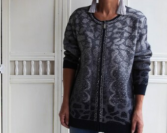 Vintage blue shiny strass zip up knit cardigan,jacket.size 44