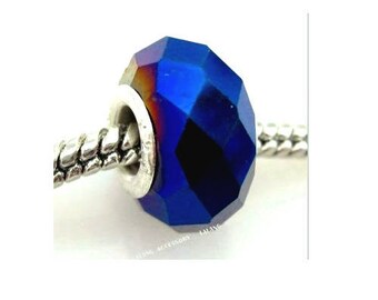 Set of 4 glass dark blue, shiny, faceted beads 14 mm x 9 mm