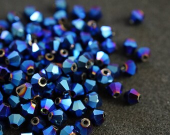 25 BICONES 4 mm Crystal Blue shiny N85