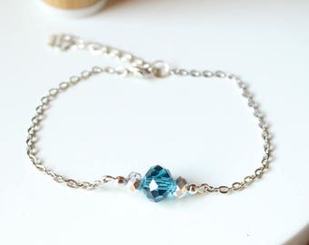Women bracelet, minimalist, silver bracelet, glass beads, blue, shiny