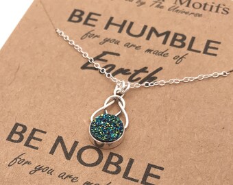 Titanium Druzy Sterling Silver Pendant-Hand Made Sterling Silver Peacock Green and Blue Knot Necklace OOAK