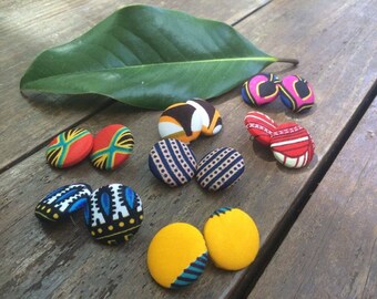 African cloth fabric button earrings