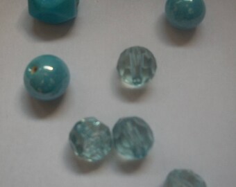 Assorted beads Blue shiny and transparent