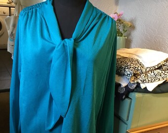 Gorgeous Vintage 1970/80s Teal Blue Shiny Shirt/Blouse