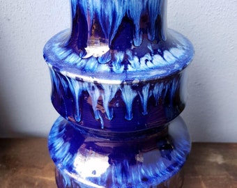 Shutty Ceramic Pagoda Floor vase Blue shiny West German Pottery West German Pottery 1970s Vase 70s