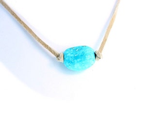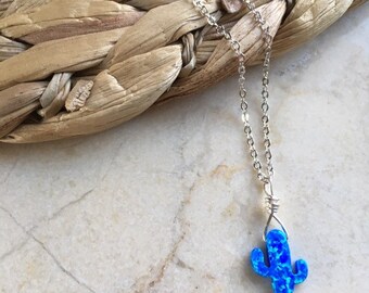 Silver Plated Necklace with Bright Blue Opal Cactus. Dainty. Cacti