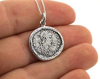 Sterling Silver Ancient Coin Charm necklace 925 Vintage Look jewelry charm pendant with 925 sterling silver chain (N62)