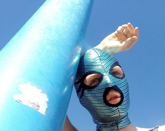 Blue Shiny Mask with Black Contours and Asymmetric Eyes