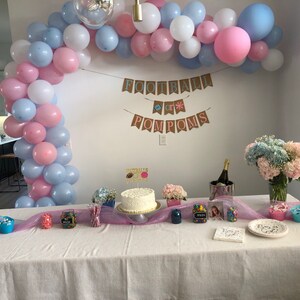 We love to create a special order to fit your needs! Would you like pink balloons for a girl!! Or pink and blue for a gender reveal? Just send a convo with your order!