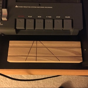 This hardwood dual channel splicing block is designed for 1/4" and 1/8" tape for reel to reel, 8 track and cassette tapes. Also contains both 90° and 45° cut guides. It is composed of a dense hardwood and is very durable against cuts. This is a new unused splicing block and will last for years to come for your audio tape repairs. Wood grain may vary with what you receive between maple, hickory or oak depending on current available stock.