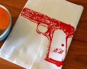 Housewares Kitchen Cloth kitchen home decor towel dish cloth tea towel bar towel flour sack screen print room decor gun pistol red dish towel