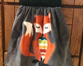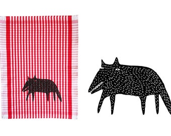 Kitchen Bar Towel Red Fox on Grey