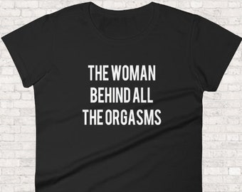 The Woman Behind All The Orgasms | Sex Joke Quote Shirt | Sexy Dark Humor T-Shirt for Women | Funny Sexual Gift Idea for Wife or Girlfriend