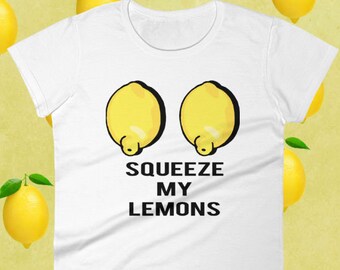 Squeeze My Lemons | Sexy Boobies Quote Shirt | Sassy Humor T Shirt for Women | Funny Raunchy Gift Ideas for Wife - Sizes - S, M, L, XL, 2XL