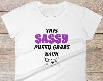 This Sassy Pussy Grabs Back | Funny Shirt Cat with Graphic | Raunchy Sex Dark Humor Angry Kitty T-Shirt | Hilarious Tees Gift Idea for Wife