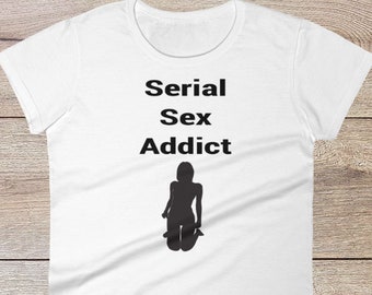 Serial Sex Addict | Funny Exotic Quote Shirt | Raunchy Offensive T-Shirt for Women | Naughty Woman | Kinky Humor Tees | Gag Gift for Wife