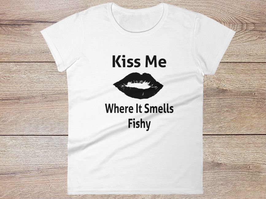 Kiss Me Where It Smells Fishy | Funny Raunchy Sexy Quote Shirt for Women | Offensive Pussy Saying T-Shirt Quirky Sexual Gift Idea for Wife