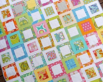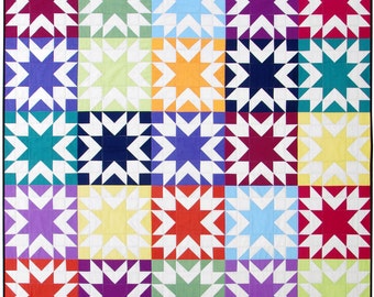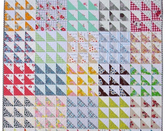 Sweet Daisy is a traditional quilt pattern using modern fabrics, and is suitable for a beginner to intermediate sewer. It requires experience in rotary cutting and basic straight line sewing. It is a fresh and modern pattern based on just one traditional quilt blocks.