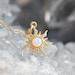 ☀️Necklace features shiny gold-tone metal sun charm hanging from a black vegan leather choker necklace