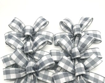 Christmas Black and White Decorative Bows - Buffalo Plaid Small Bows - Gingham Small Bows - Set 24 Small Bows - Handmade and Designed on wired ribbon with this Lovely Gingham Black and White Patterned - Print.