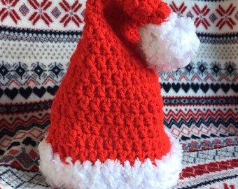 This crocheted Santa hat is beautifully made & so cute I can hardly stand it!