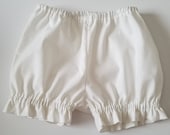 These elastic-waist bloomers are handmade in a smoke-free home and have serged seams for quality and durability. Bloomers have elastic around the legs with a ruffle, making them extra sweet for little girls.