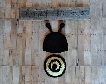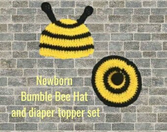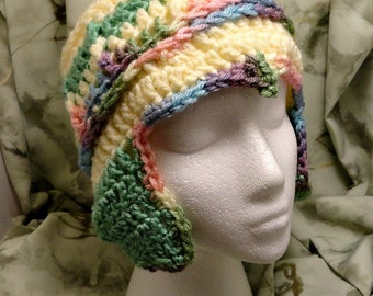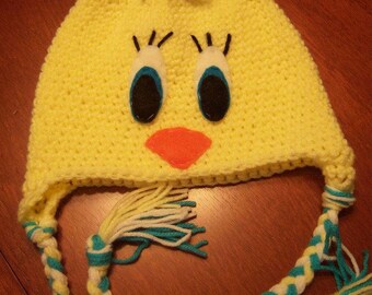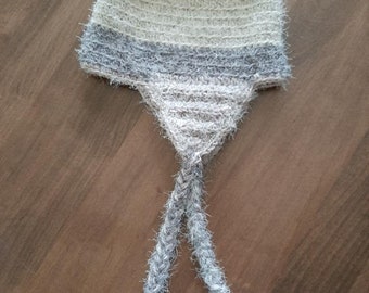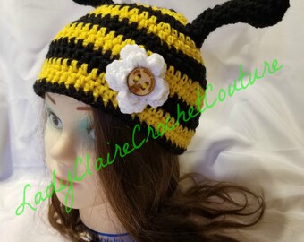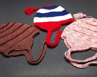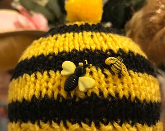 Knitted bumble bee hat with ear flaps