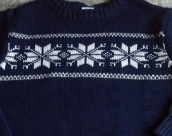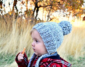 Knit Toddler Hat in Vegan Cotton with Earflaps and Navy Blue Green White Nordic Snowflake Babbidge Patch Originals