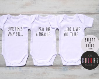 Triplets "HO, HO, HO", Set of 3 Holiday Bodysuits for Triplets, or for Siblings set of 3 different sized t-shirts