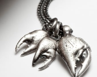 Sterling silver crab claws pendant necklace and chain