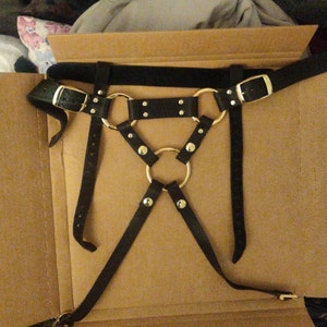 I've never felt more invincible than when I'm wearing my new harness. I contacted them to make sure I could get the gold hardware in a gallo, with soft leather because this is my first leather harness. It's leagues better than the nylon sliding/adjustable ones from sex shops. My partners love it too. Doesn't fit my toys that have smaller flared bases, but I bought a grinder to fit on the back and keep em in place. Thank you so much for the thing that's radically improved my self-image and sex life :')