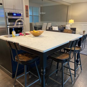 These barstools are absolutely amazing!! The gray wash makes them really unique. I love that the height was customizable because we have a higher counter top & it was nearly impossible to find the right height in a pre-made barstool. Finally, these are so solid & sturdy! They have adjustable feet included to ensure they are solid on any surface. Packaging fur shipment was awesome too! I just cannot day enough good things about these barstools. Love!!!